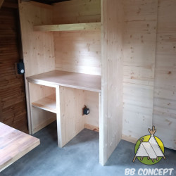 - Avec Salle de Bain à la place du 3ème couchages et plan de travail avec évier et plaque de cuisson.